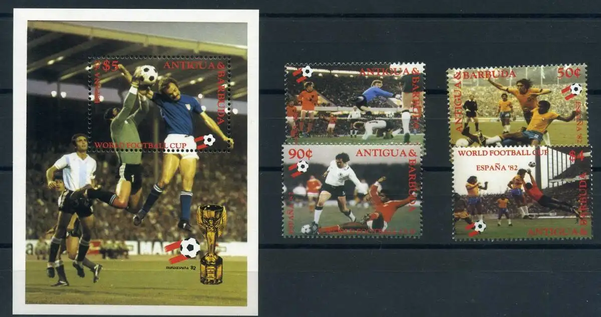 Fußball Antigua und Barbuda MiNr 659-62 A + Block 60 ** #GE407