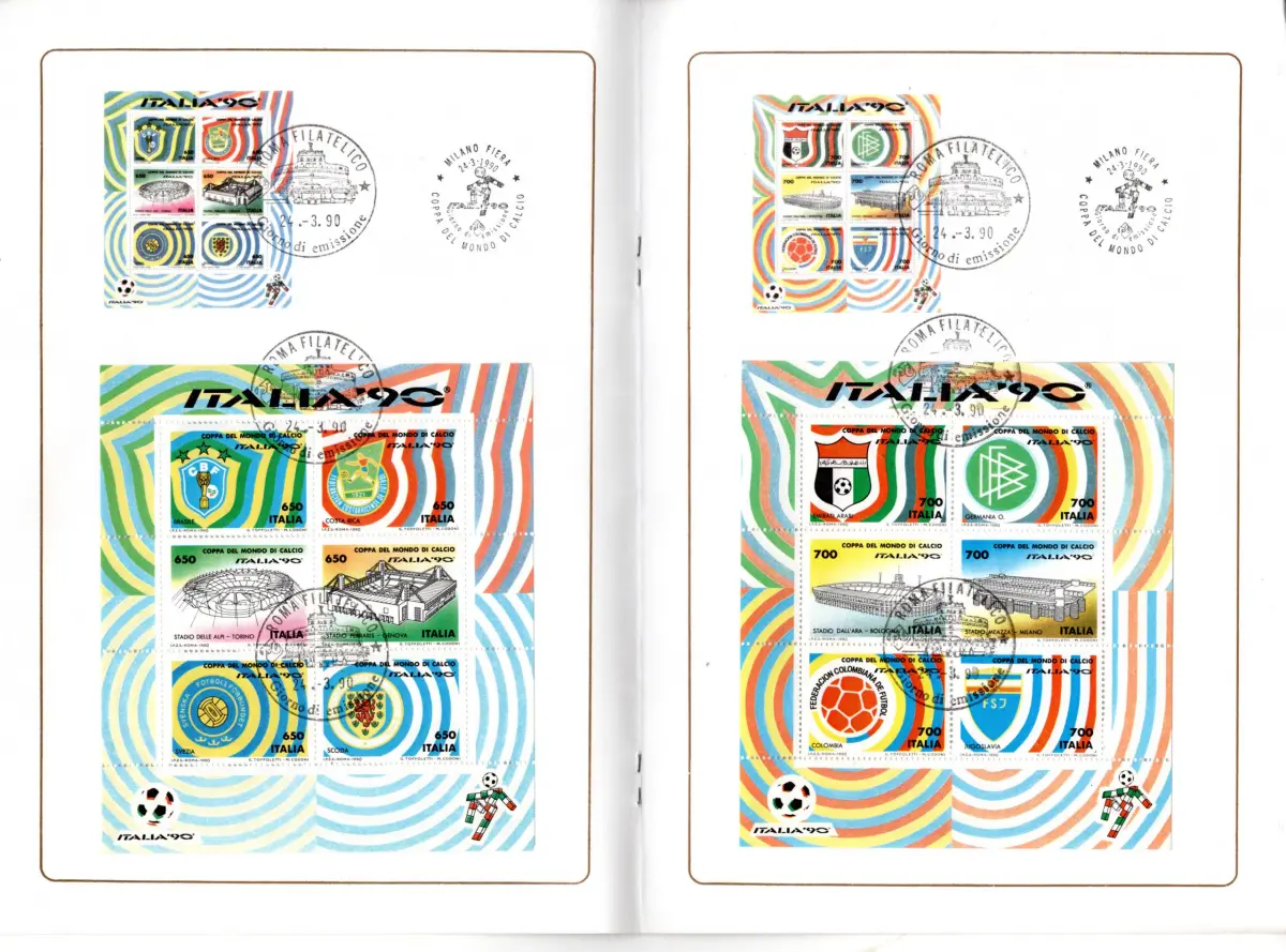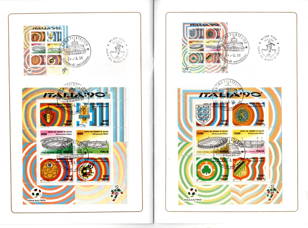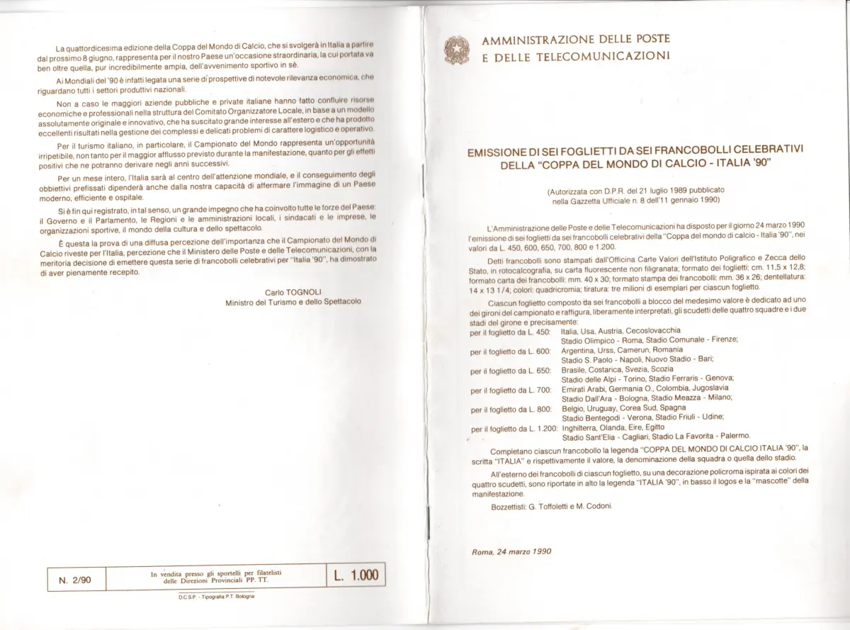 FRAGMENT - Calcio Italia '90 Das Ministerialbulletin zur Präsentation der neuen Ausgabe mit der Serie der sechs verschiedenen Zettel, die am ersten Ausgabetag mit der Briefmarke Roma Philatelico annulliert wurden - Ungewöhnlich, Gelegenheit für Sammler zum Thema Fußball Cod.463/182