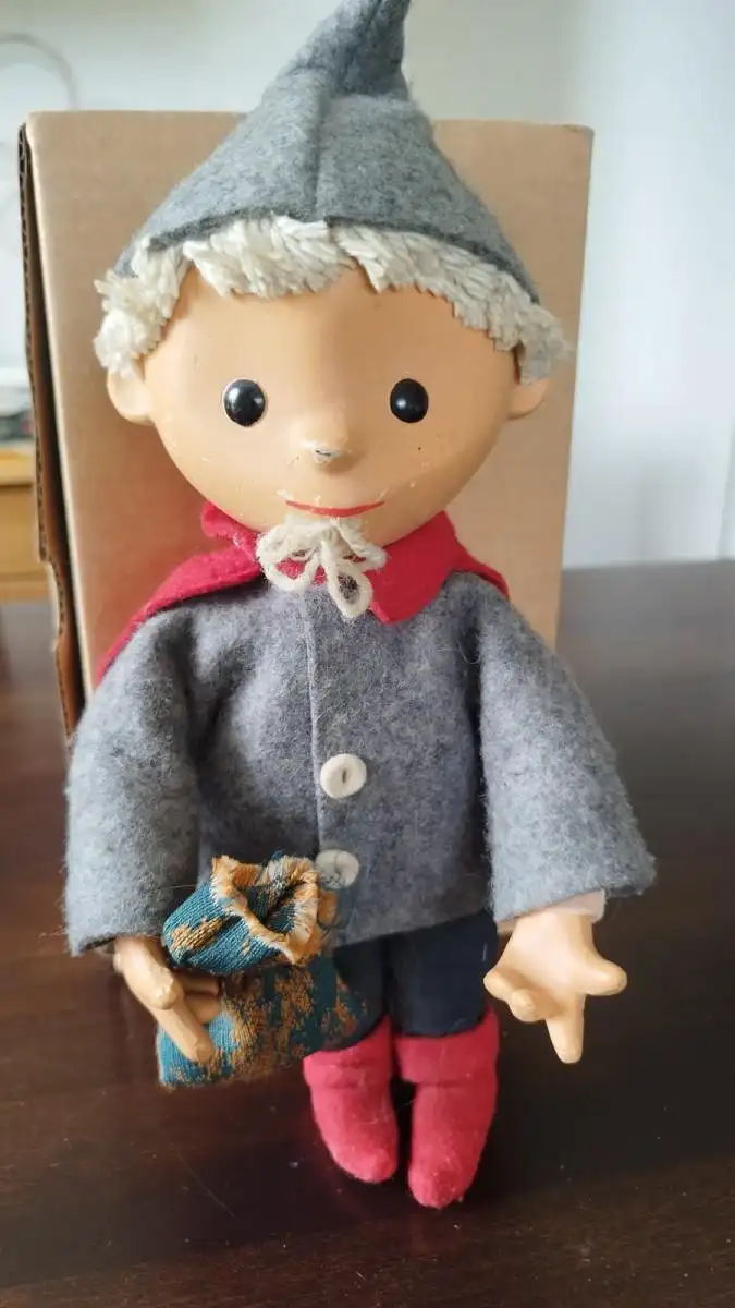 Niedlicher kleiner alter Sandmann. Eine frühe Version,in der die Hände noch aus Masse ( Holzspäne mit Pappe Mischung) bestand.