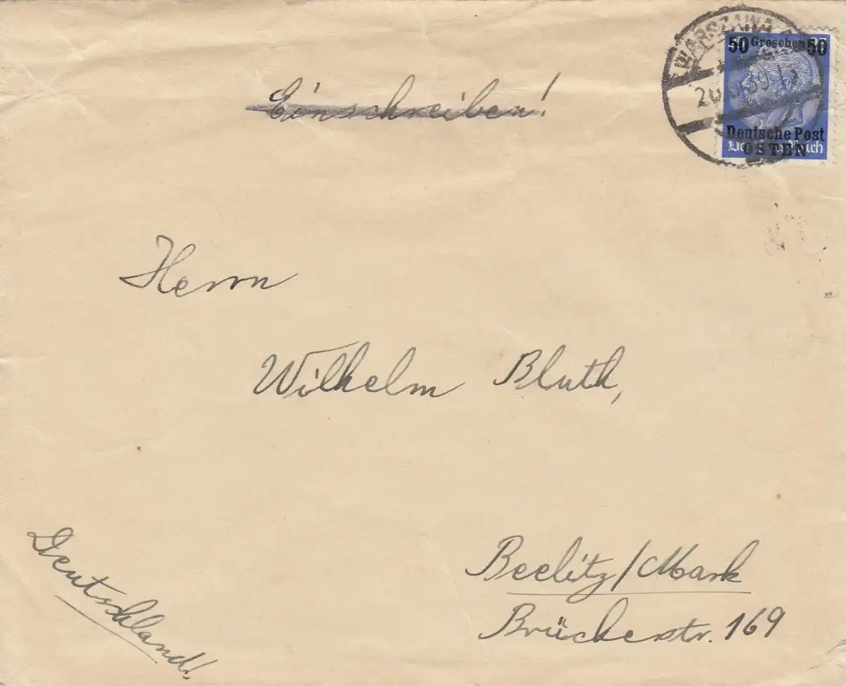 GG: 20.12.39, portogerechter Brief von Warschau nach Beelitz