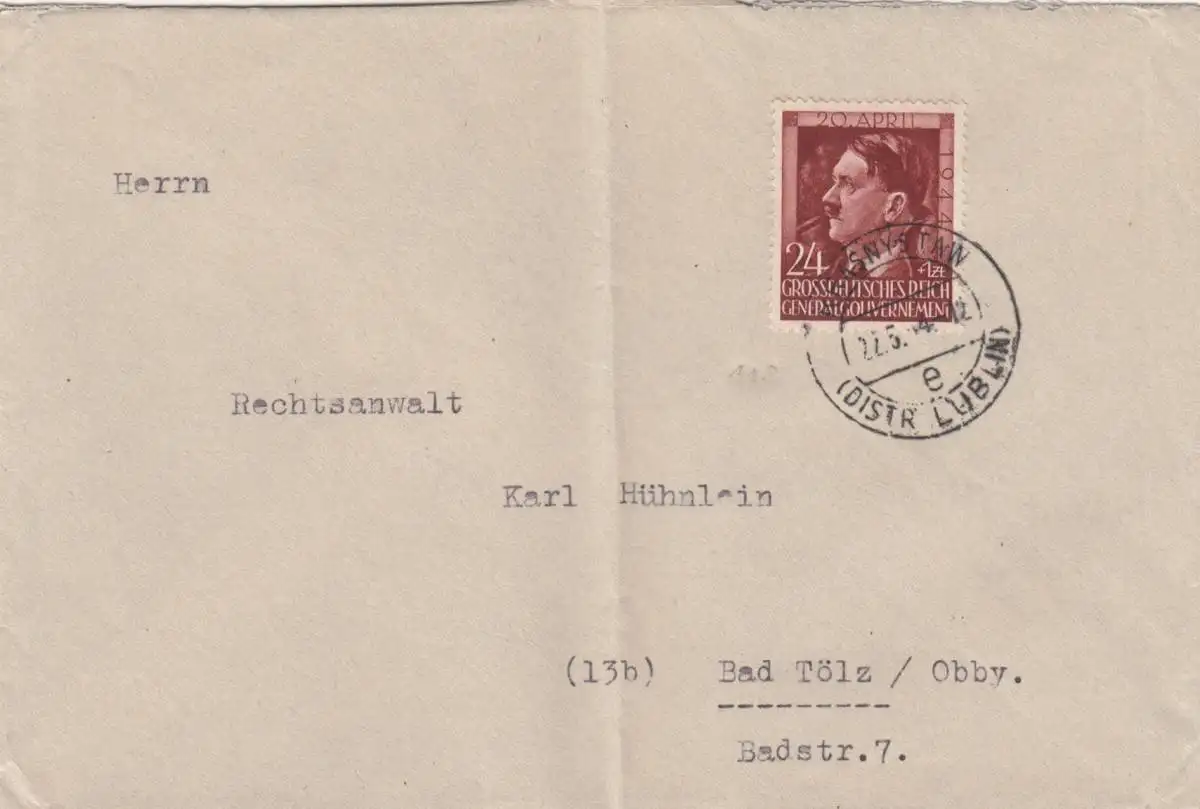 GG: Brief mit portogerechter EF von Krasnystaw nach Bad Tölz, Bug