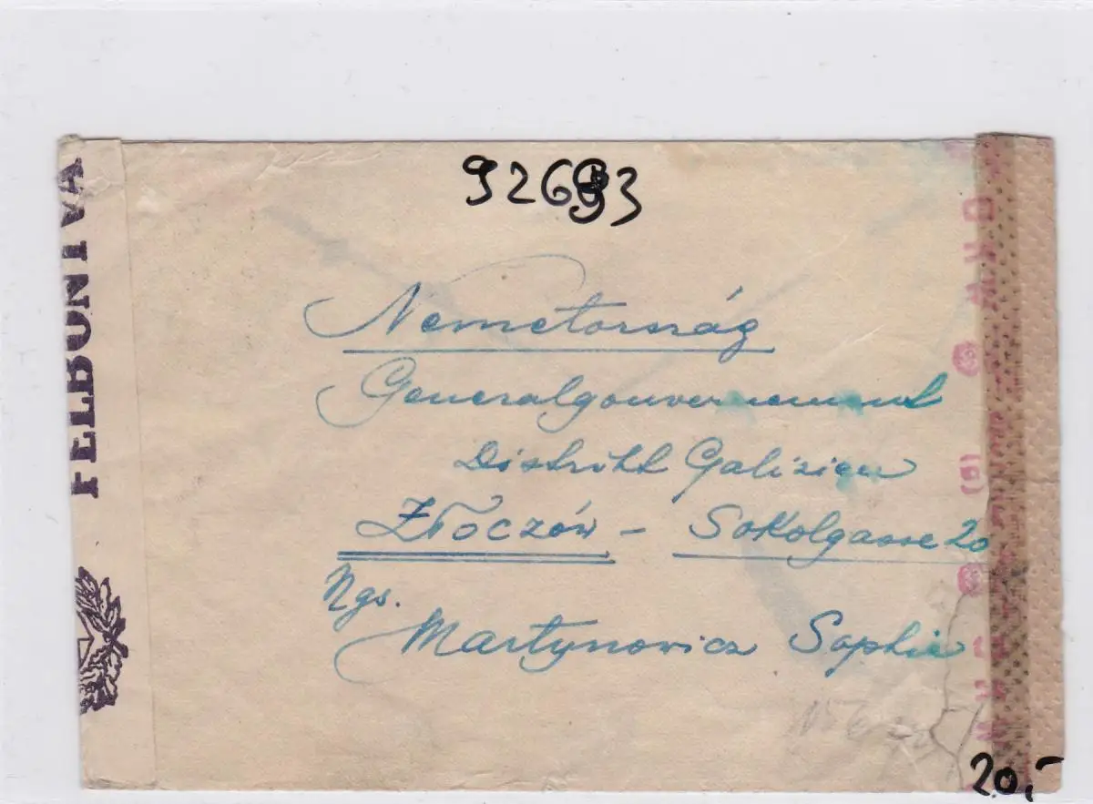 GG: Brief von Ungarn ins GG mit 2xZensur