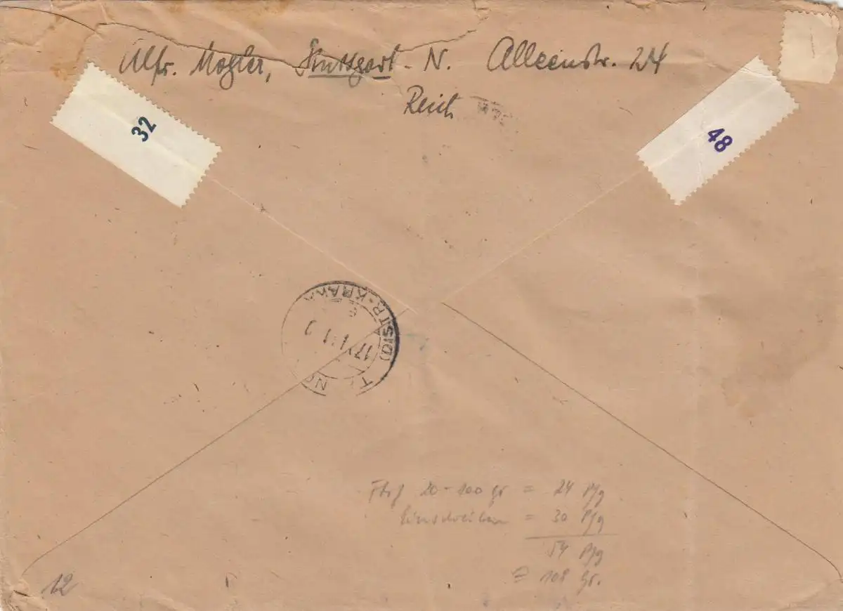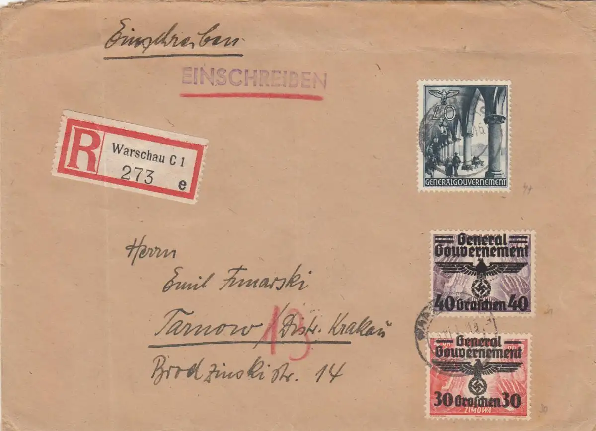 GG: Einschreiben Warschau nach Tarnow, knapp portogerecht 108Gr
