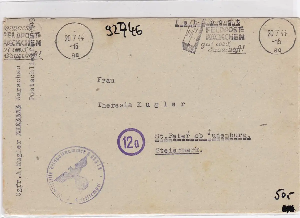 GG: Feldpostbrief mit Werbestempel aq aus Warschau nach St. Peter, mit Inhalt