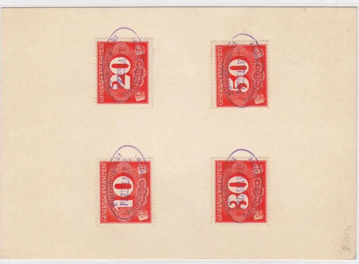 GG Generalgouvernement MiNr. Z1-4 gestempelt Przeslavice Karte mit Ovalstempel