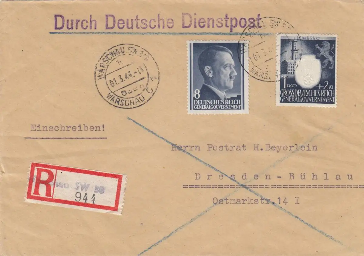 GG: MiF Einschreiben Warschau nach Dresden, portogerecht