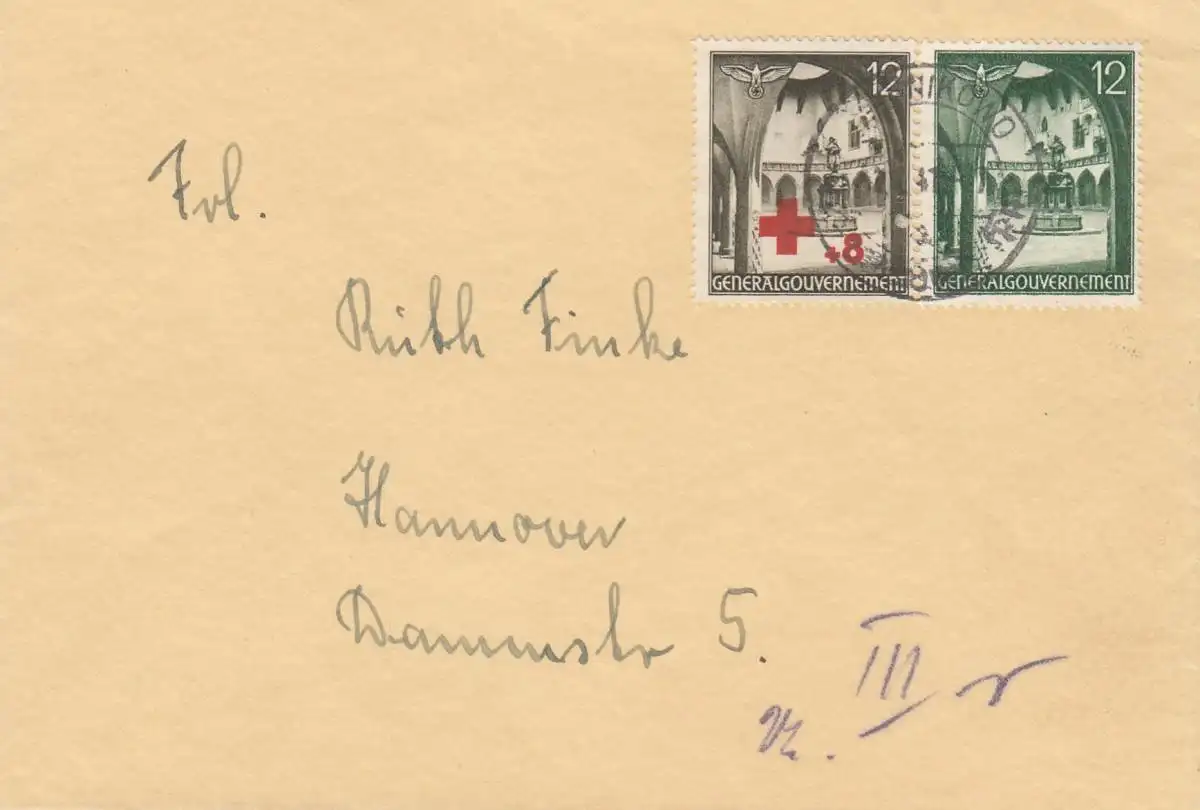 GG: MiF der 12Gr Rotes Kreuz, portogerecht nach Hannover