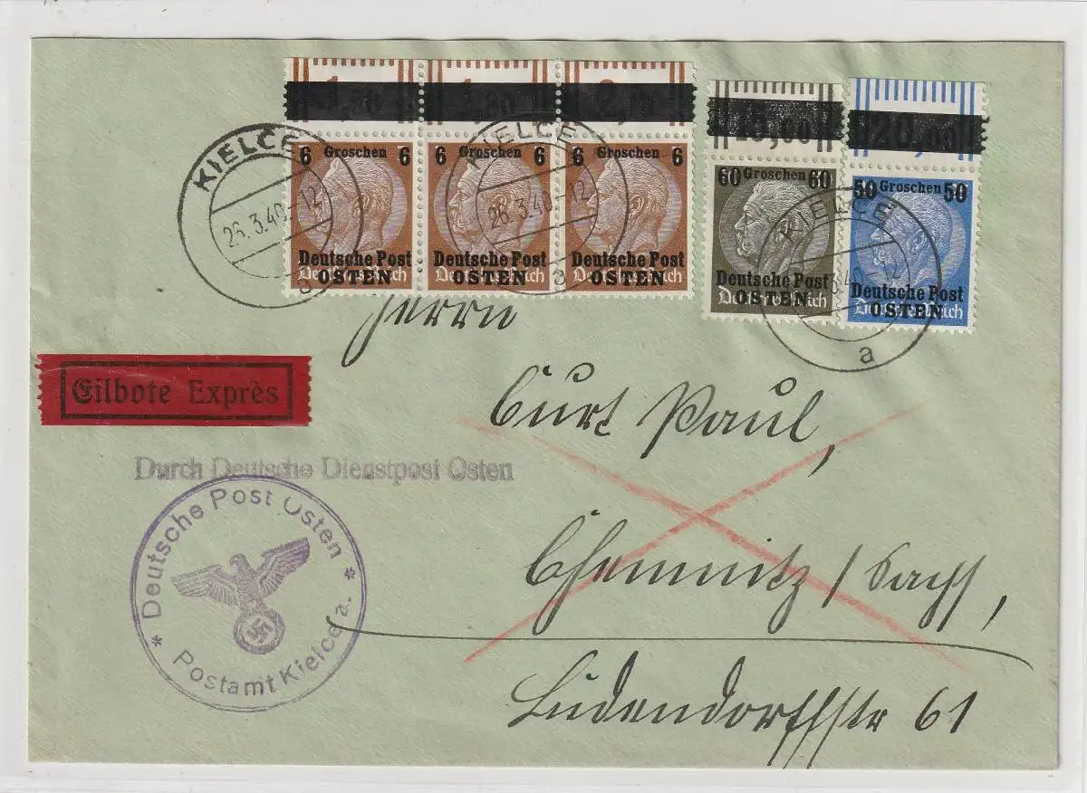 GG: Oberrand-Marken auf Eilboten-Brief ab Kielce
