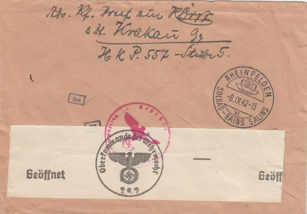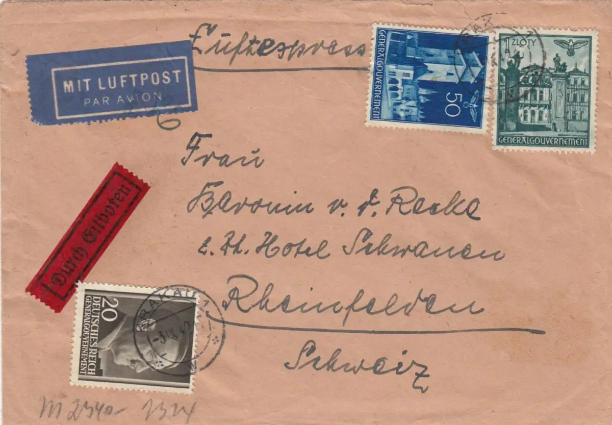 GG Schweiz Luftpost Eilbote, portogerecht Krakau nach Rheinfelden, Zensur