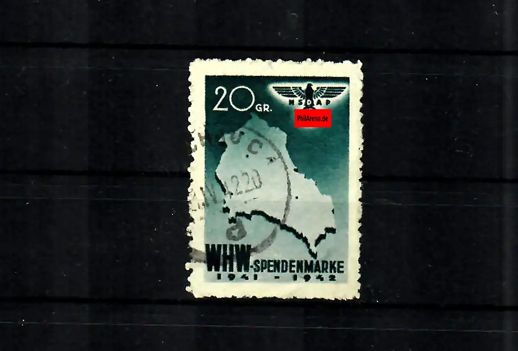 GG: WHW Spendenmarke für das Generalgouvernement, 20 Gr. gestempelt 1942