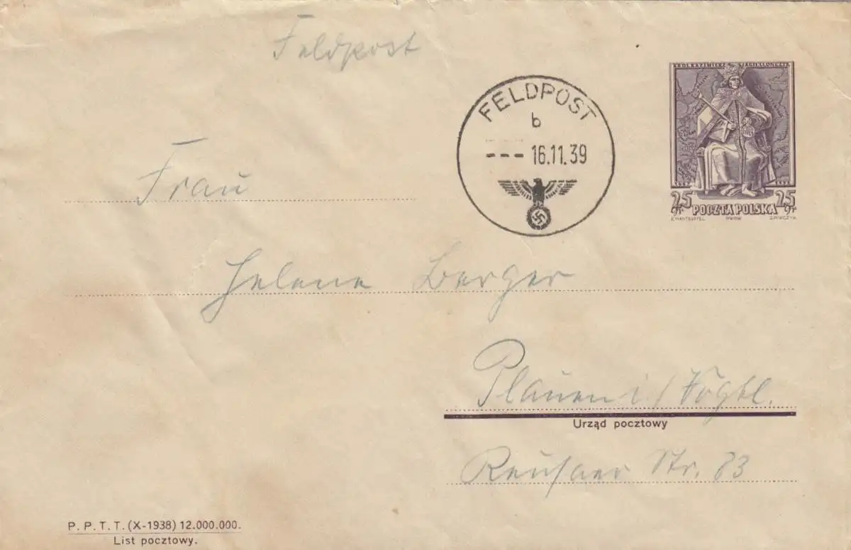 GG poln. Ganzsache 16.11.39 als Feldpost