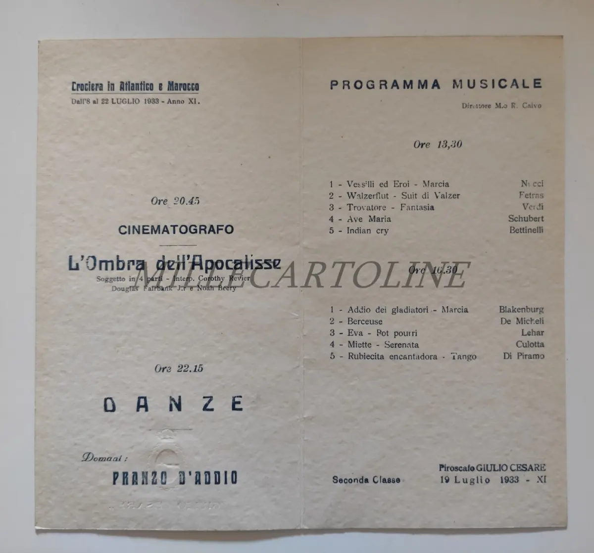 GIULIO CESARE - Musikprogramm 1933 G.P.