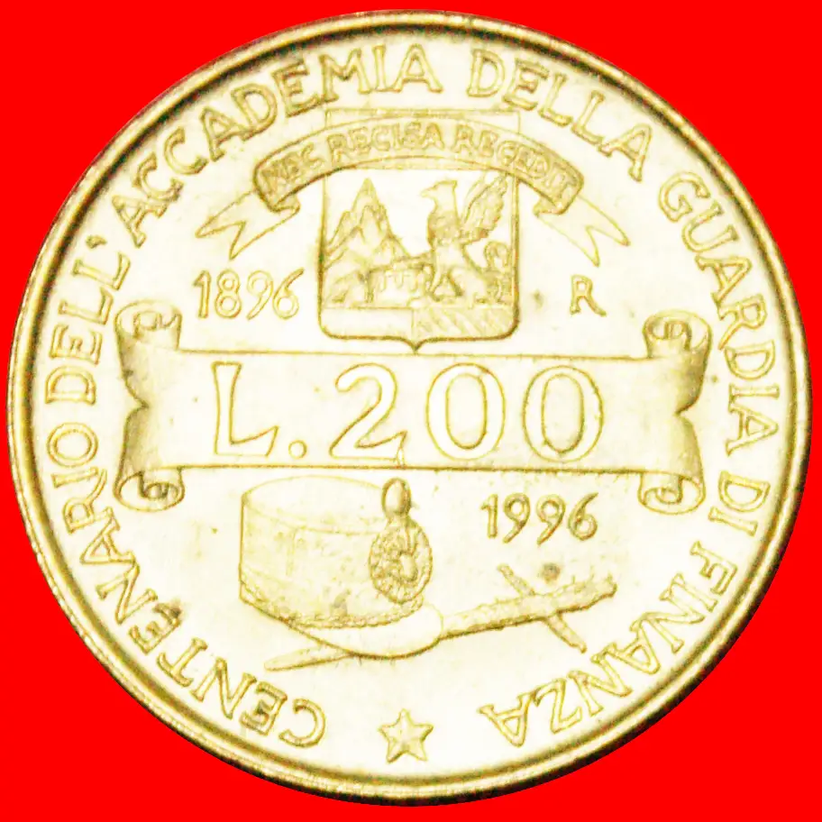 * GRIFFIN: ITALY ★ 200 LIRAS 1896-1996R! MINT LUSTRE!
