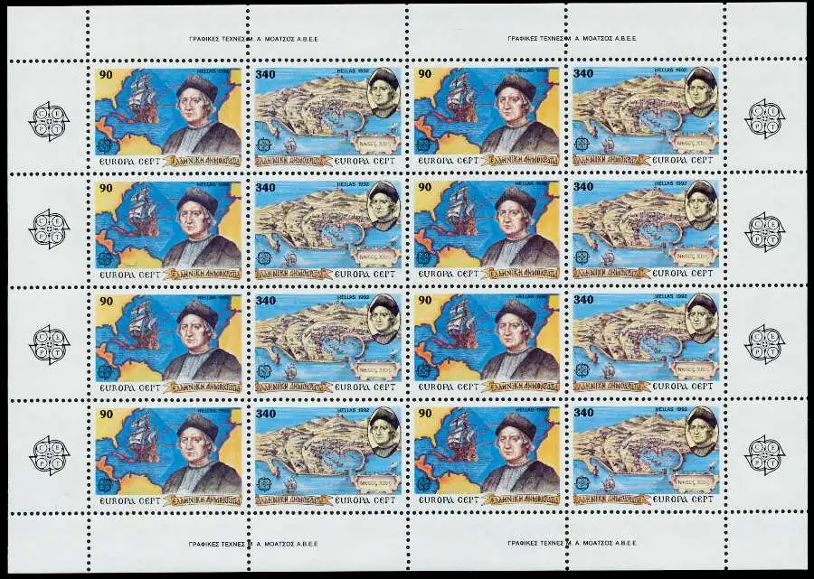 Kleinbogen Europa - Entdeckung von Amerika (MichelNr.: 1802A, 1803A)