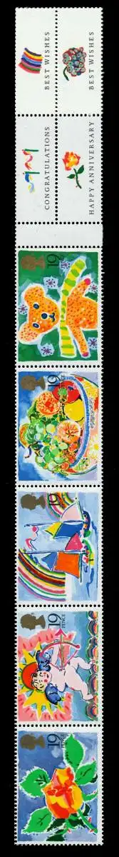 Grußmarken aus MH 84, halbes Heftchenblatt mit 6 anhängenden Zierfeldern (MichelNr.: )