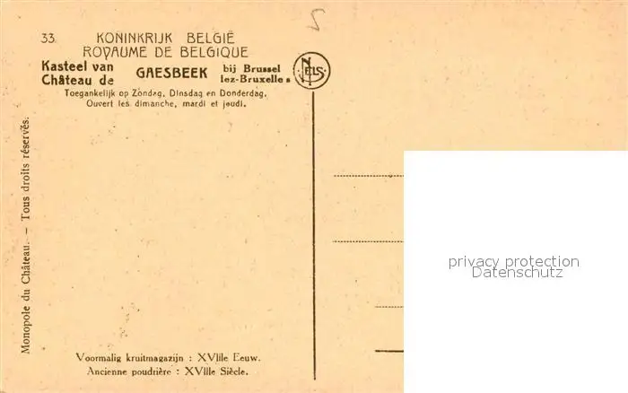 Gaasbeek Chàteau ancienne poudrière XVIIIe siècle Gaasbeek postalisch nicht gelaufen 1921-1965 Erhaltung siehe scans [FriedD77] Frierer
