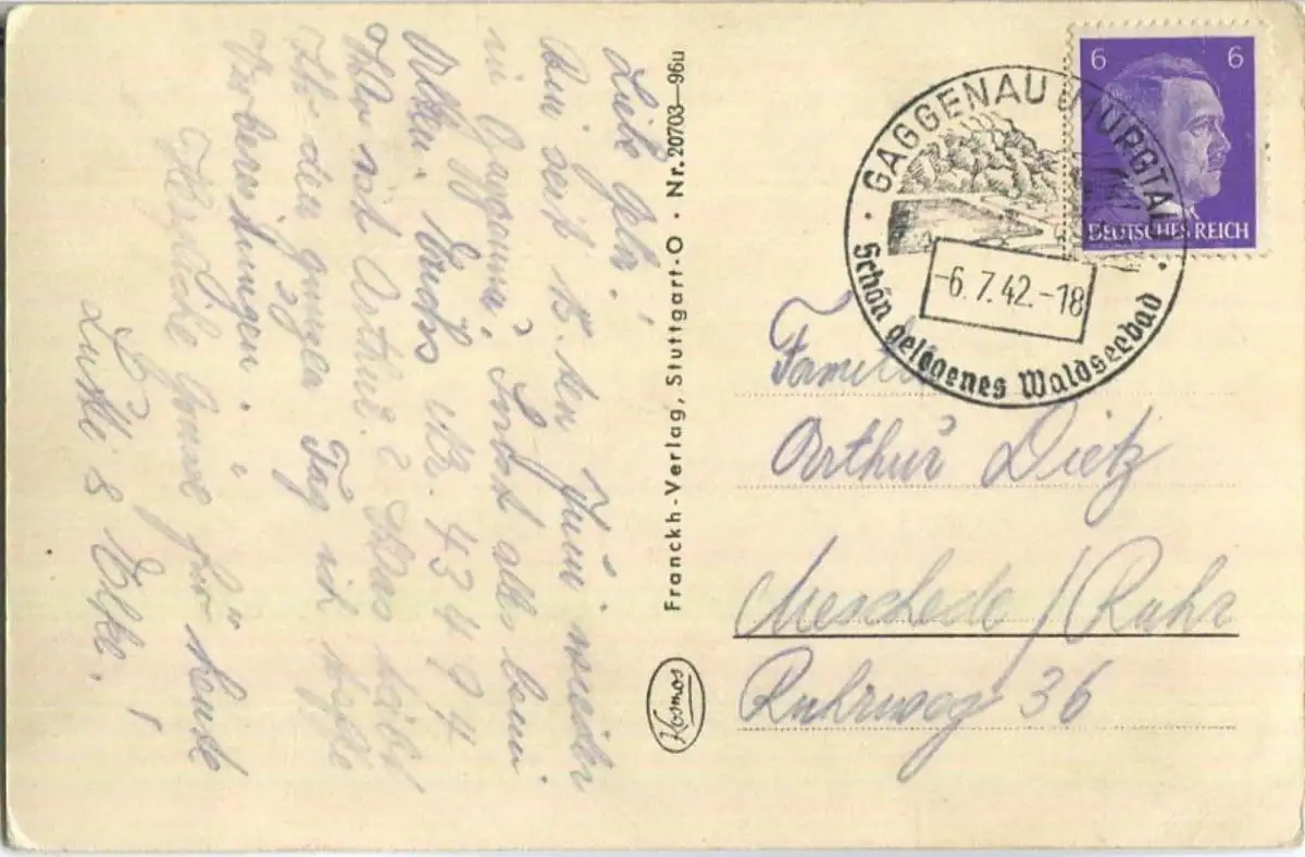 Gaggenau Murgtal - Partie an der Murg - Foto-AK - Franckh-Verlag Stuttgart - leichte Gebrauchsspuren (G15347) gel. 1942