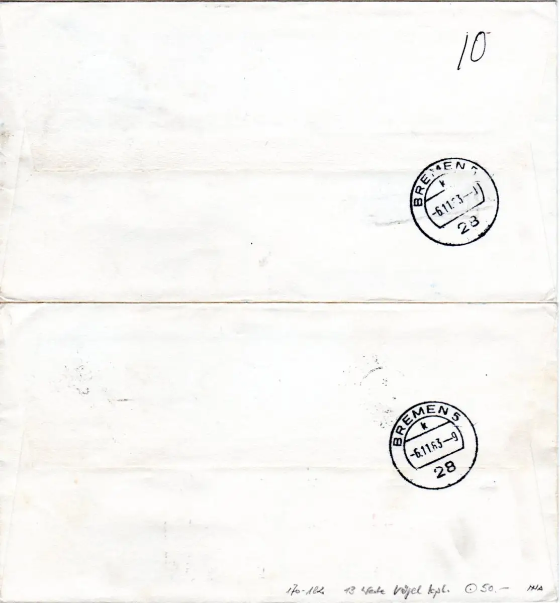 Besserer kpl. Vogel-Satz auf 5 FDC m. rücks. Ankunftstempeln v. Bremen.