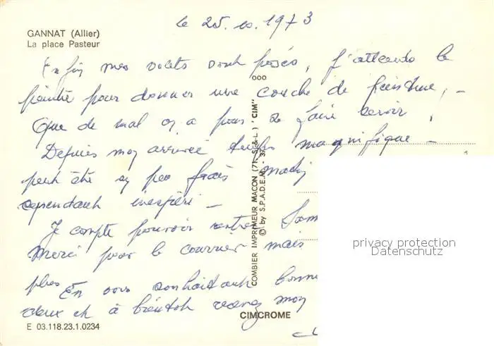 Gannat La place Pasteur Gannat postalisch nicht gelaufen 1973 Erhaltung siehe scans [WerneD78] WernPID7