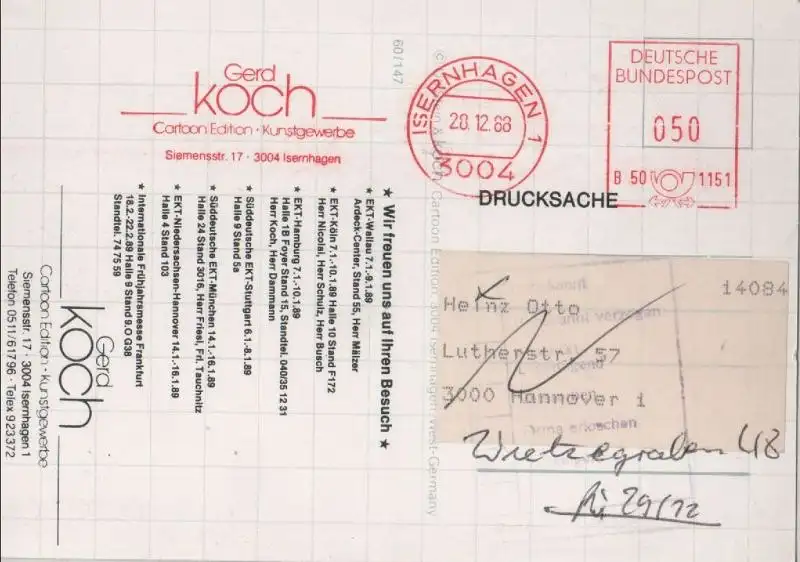 Ich hatte die Rechnung sofort als Vorkasse bezahlt, aber keine Zusendung der Karte erhalten. Trotz Nachfrage keine Rückmeldung bzw. Erklärung. Da es sich zum Glück nur um 1,70 € handelt, ist die Sache für mich erledigt, ärgerlich, aber zu verkraften. Mit den drei anderen Karten, die ich bestellt hatte, hat alles wunderbar geklappt.
