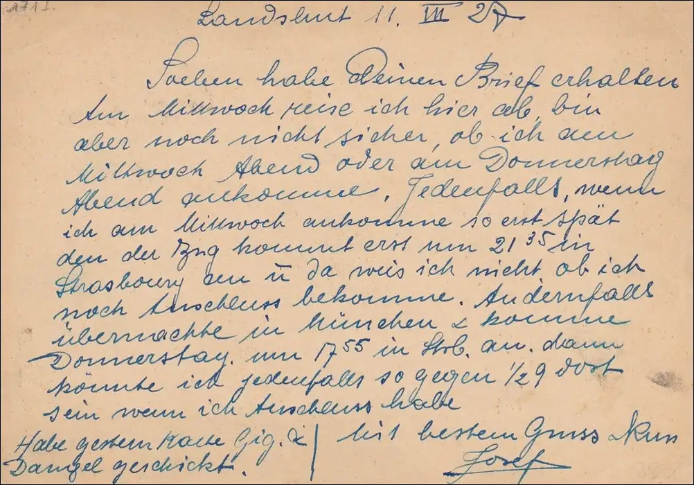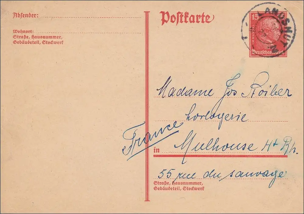 Ganzsache: 1927 von Landshut nach Mulhouse, Frankreich