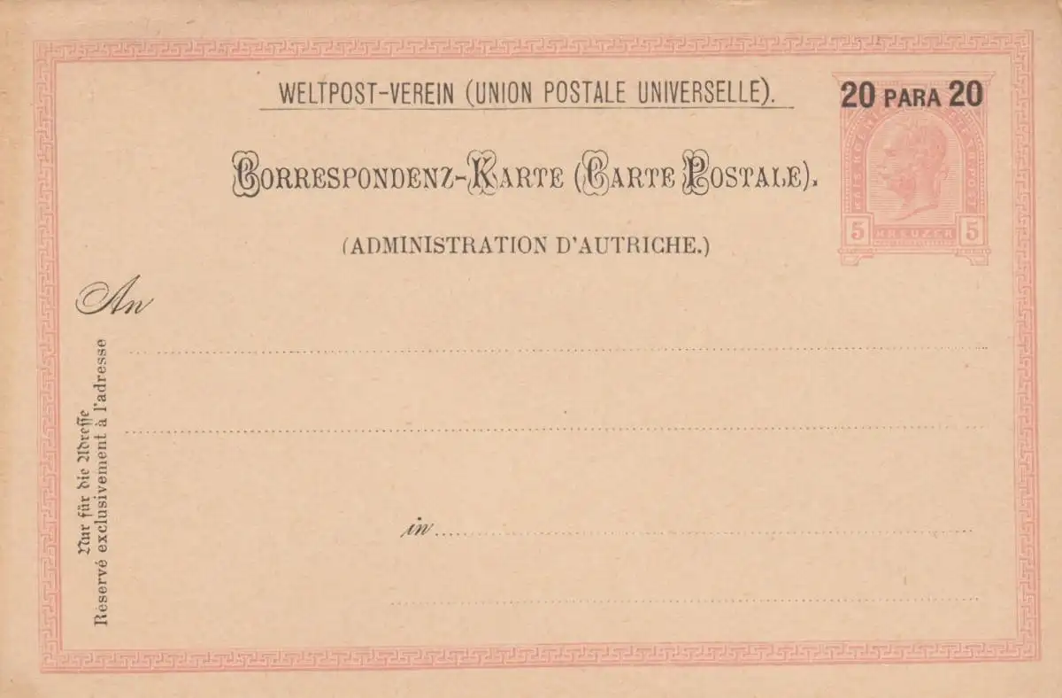 Ganzsache, Blanko, UPU, 5 Kreuzer