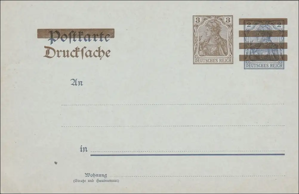 Ganzsache: Germania Drucksache mit Werbung Briefmarken