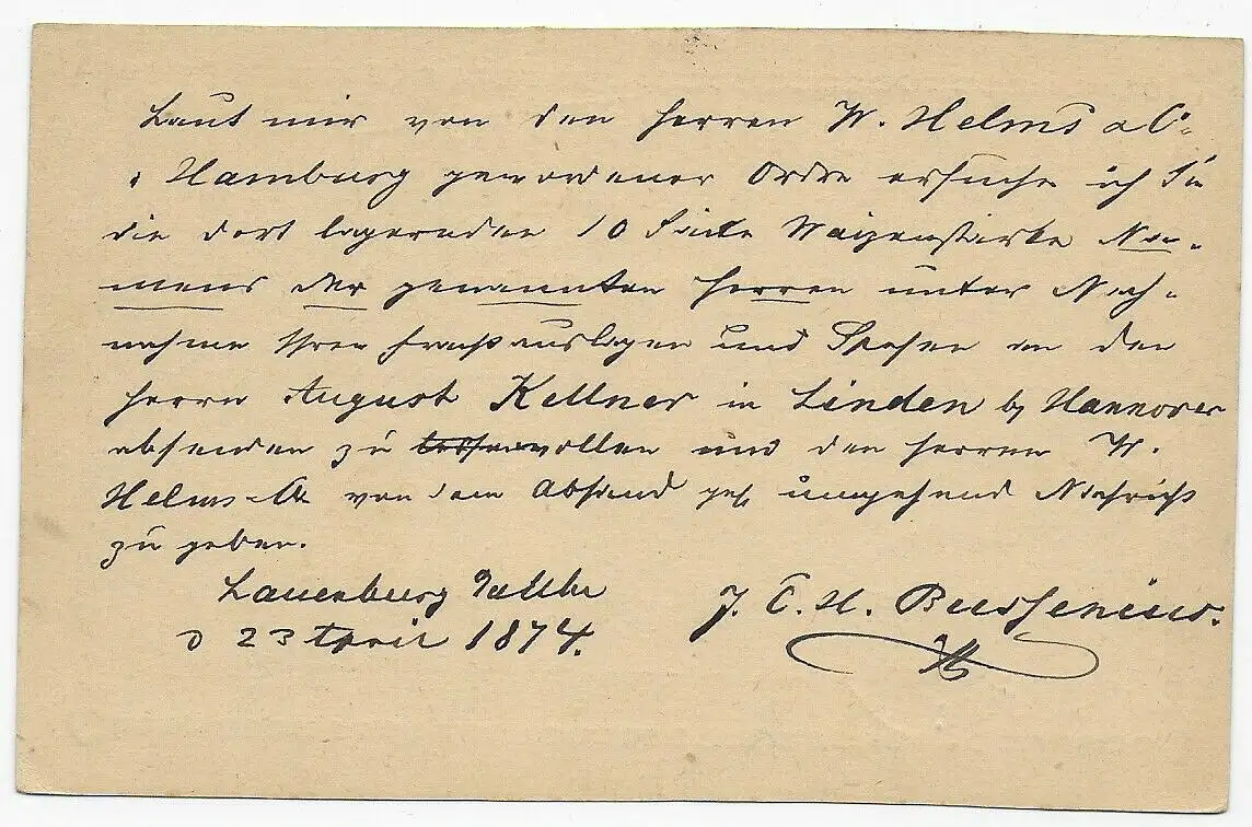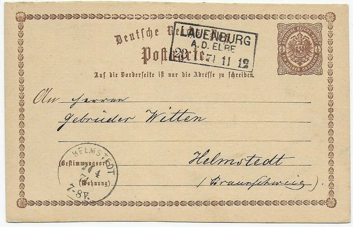 Ganzsache Lauenburg nach Helmstedt, 1874