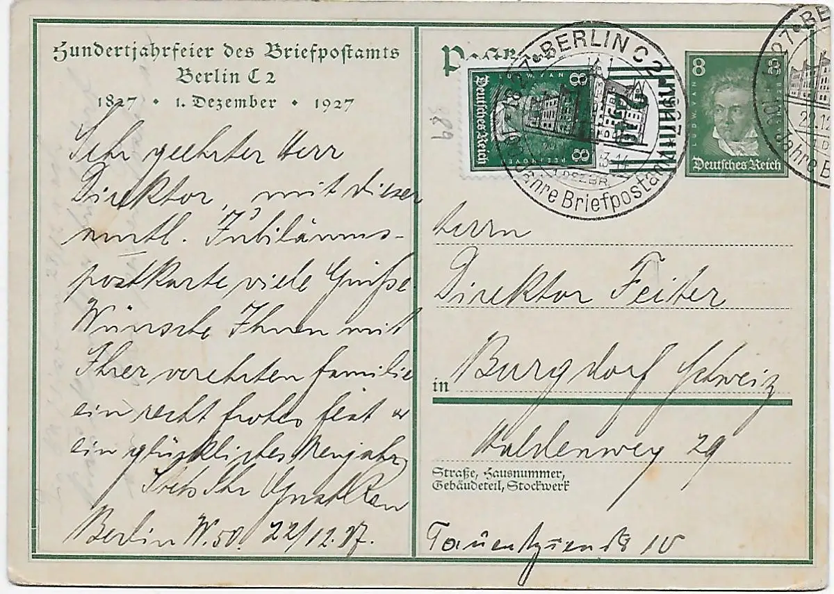 Ganzsache MiNr. 389 OR W Jahrhundertfeier des Briefpostamtes Berlin, 1927