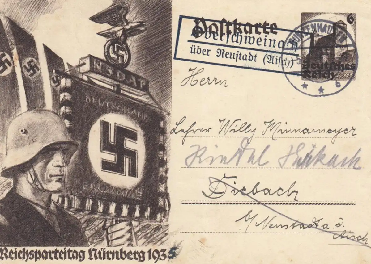 Ganzsache Oberschweinach über Neustadt/Aisch 1935 nach Diebach