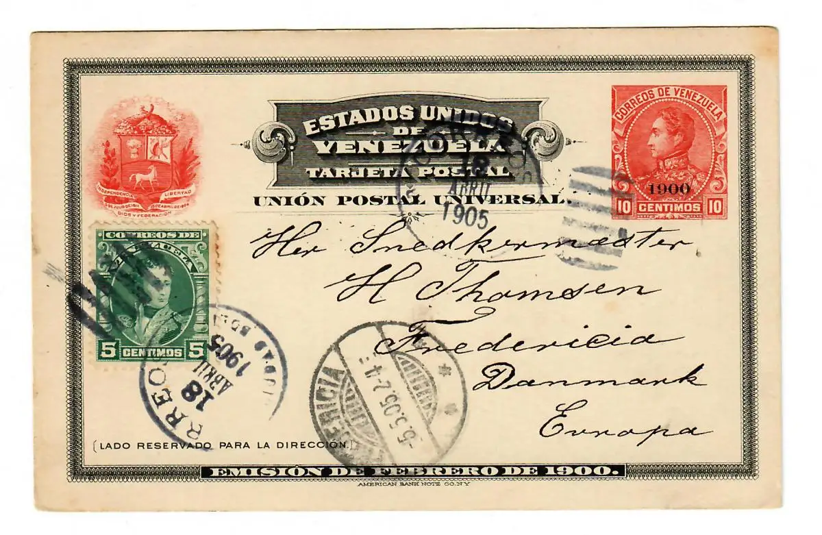 Ganzsache nach Dänemark 1905