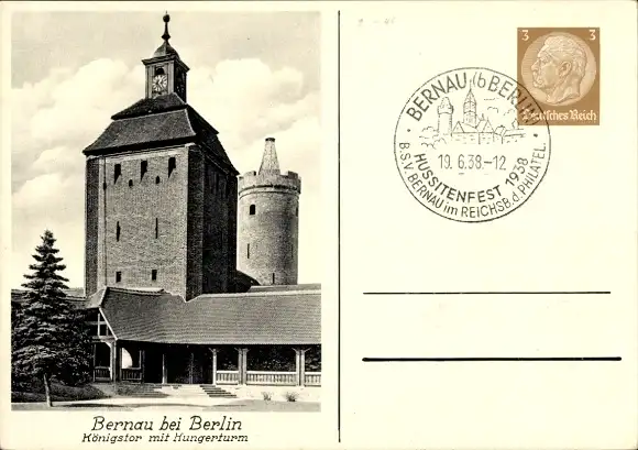 Ganzsachen Ak Bernau bei Berlin, Königstor, Hungerturm