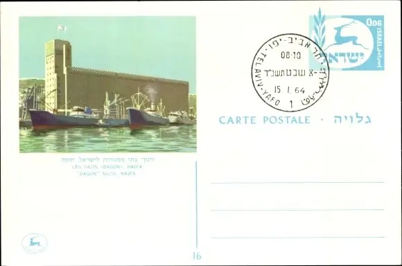 Ganzsachen Ak Haifa Israel, Les Silos Dagon, Kornkammer, Hafenpartie