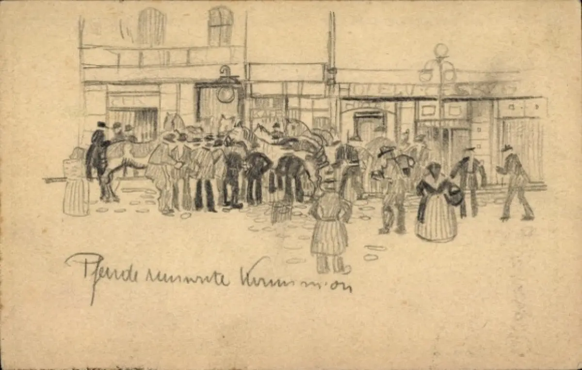 Ganzsachen Ak Menschenansammlung auf dem Platz, Geschäfte