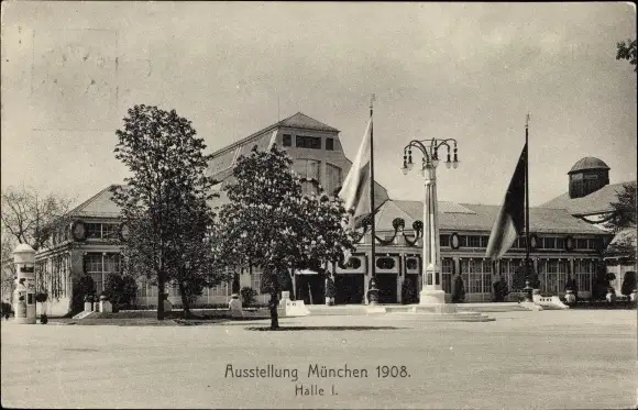 Ganzsachen Ak München, Ausstellung 1908, Halle I.