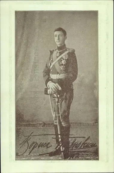 Ganzsachen Ak Prinz Boris von Bulgarien, Standportrait in Uniform, Säbel