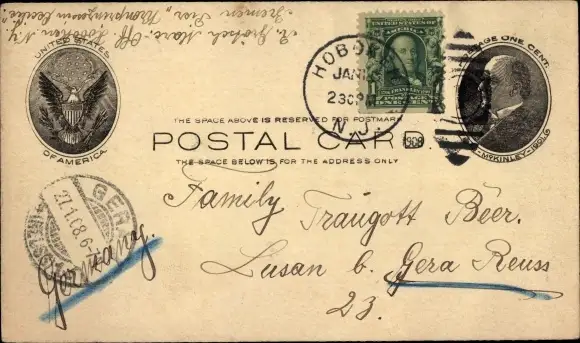 Zustand, siehe Scan, gelaufen, 1908 - ca 14 cm X 8 cm