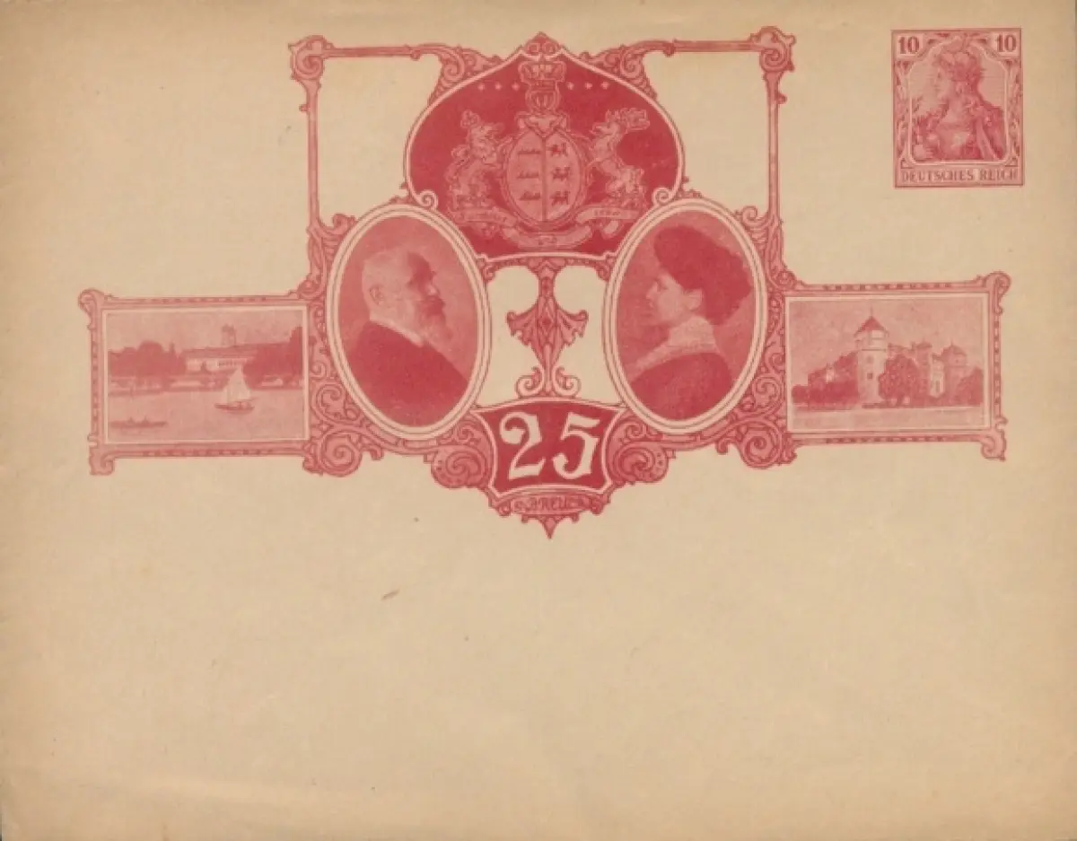 Ganzsachen Briefumschlag Königspaar von Württemberg, 25jähriges Jubiläum