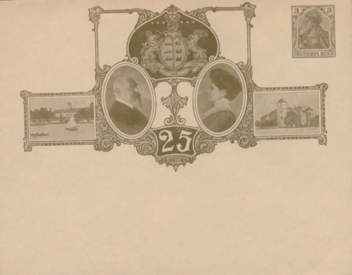Ganzsachen Briefumschlag Königspaar von Württemberg, 25jähriges Jubiläum