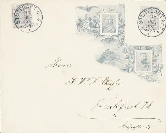 Ganzsachen Briefumschlag Stuttgart in Baden Württemberg, Friedrich I, Wilhelm II