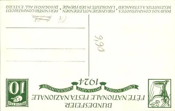 Ganzsachen Künstler Ak Bundesfeier 1924, Pour nos Compatriotes, Schweiz