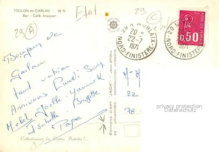 Garlan Bar Café Ansquer Garlan postalisch gelaufen 1971 Erhaltung siehe scans [FriedD77] Frierer
