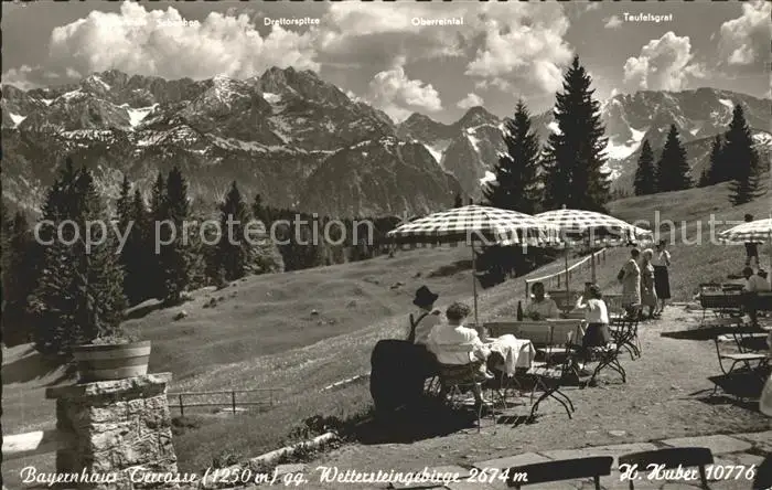 Garmisch-Partenkirchen Bayernhaus Terrasse Garmisch-Partenkirchen postalisch nicht gelaufen 1921-1965 Erhaltung siehe scans Alte Ansichtskarte Postkarte LiesID40