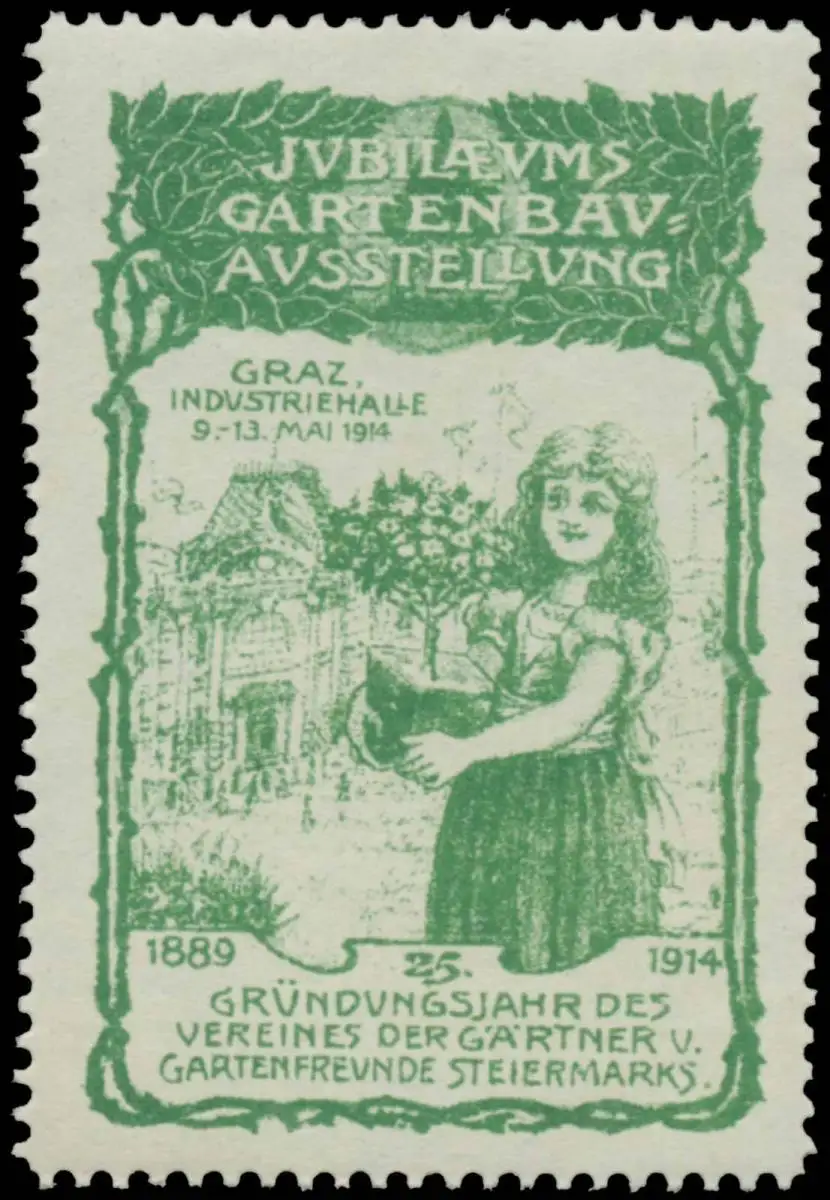Jubiläums Gartenbauausstellung zum 25. Gründungsjahr des Vereines der Gärtner und Gratenfreunde Steiermarks, Variante 2, Größe/Zustand: 6x4 , guter Zustand, Original alte Reklamemarke die seinerzeit für die Werbung benutzt wurde