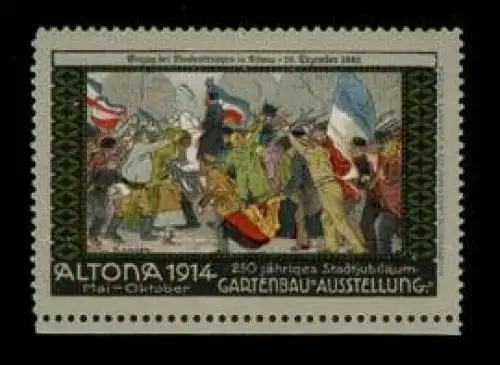250 jähriges Stadtjubiläum, Einzug der Bundestruppen in Altona, 23. Dezember 1863, Größe/Zustand: 4x6 , guter Zustand, Original alte Reklamemarke die seinerzeit für die Werbung benutzt wurde