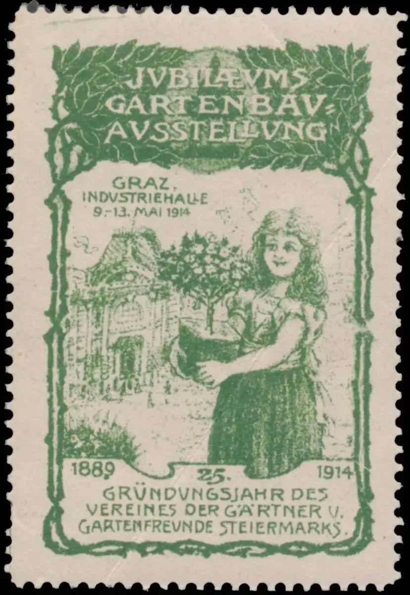 Jubiläums Gartenbauausstellung zum 25. Gründungsjahr des Vereines der Gärtner und Gratenfreunde Steiermarks, Variante 4, Größe/Zustand: 6x4 , guter Zustand, Original alte Reklamemarke die seinerzeit für die Werbung benutzt wurde