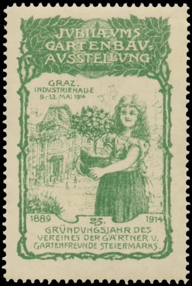 Jubiläums Gartenbauausstellung zum 25. Gründungsjahr des Vereines der Gärtner und Gratenfreunde Steiermarks, Variante 3, Größe/Zustand: 6x4 , guter Zustand, Original alte Reklamemarke die seinerzeit für die Werbung benutzt wurde