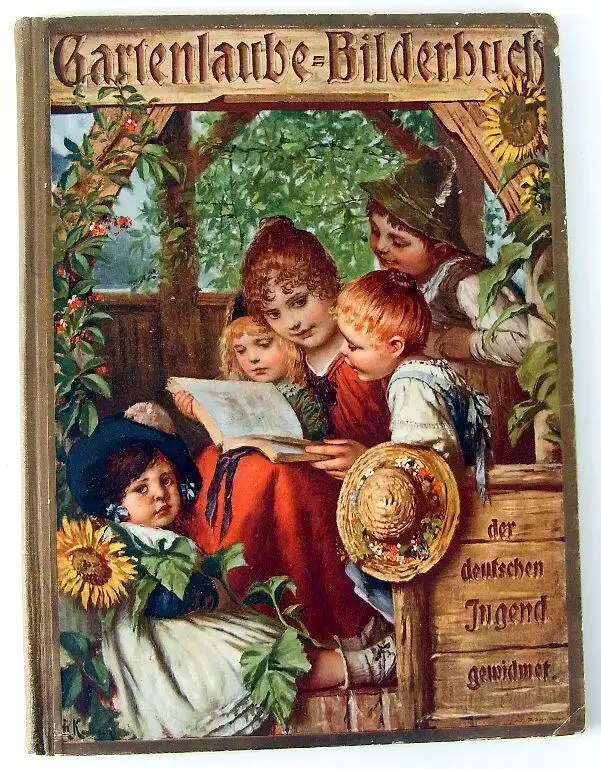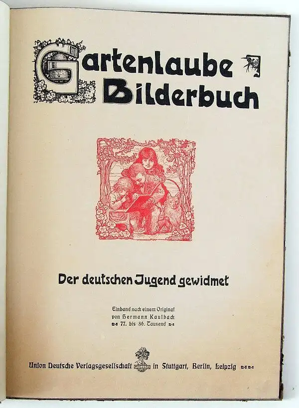 Herzlich Willkommen Sie sehen hier auf ein wunderschönes, original altes Buch: Gartenlaube-Bilderbuch der deutschen Jugend gewidmet Einband nach einem Original von Hermann Kaulbach 77. bis 86. Tausend Union Deutsche Verlagsgesellschaft in Stuttgart, Berlin, Leipzig Das Bilderbuch hat 72 Seiten mit teils farbigen Illustrationen. Größe des Buches ca.: 31,5 x 24 cm Das Buch ist im gebrauchten Zustand. Der Einband ist verschmutzt und an den Kanten stärker bestoßen. Der Einband hat auf der Rückseite mehrere Schmutz- bzw. Wasserflecken. Die Seiten sind leicht wellig. Die Buchseiten sind altersgemäß vergilbt und haben Schmutz- und Stockflecken. Das Buch ist nicht gereinigt, geputzt oder geschönt worden (siehe Fotos unten).