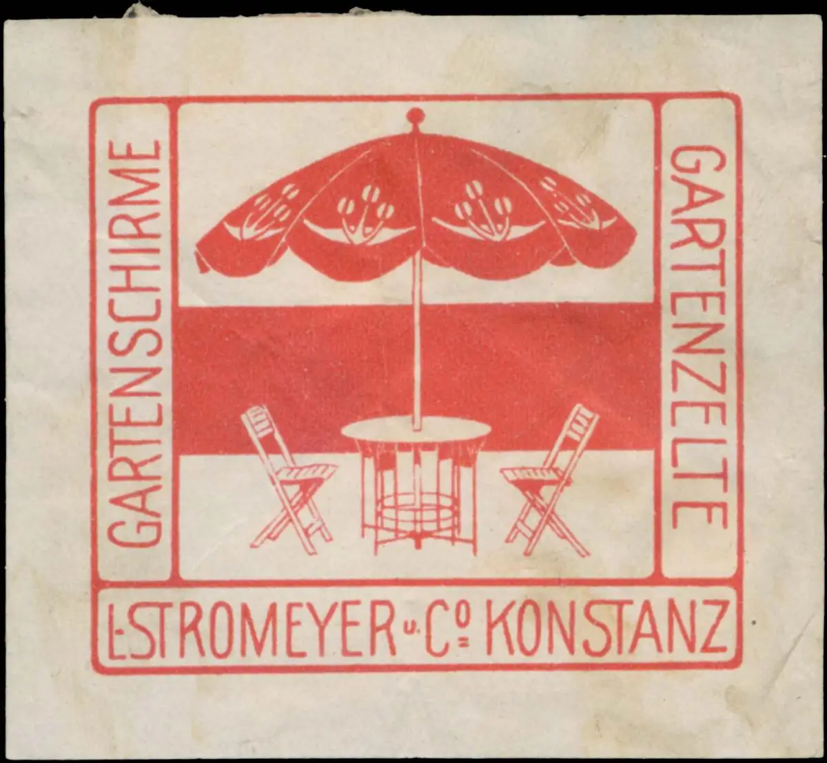 Gartenzelte, Größe/Zustand: 5x6 , fleckig, Original alte Reklamemarke die seinerzeit für die Werbung benutzt wurde