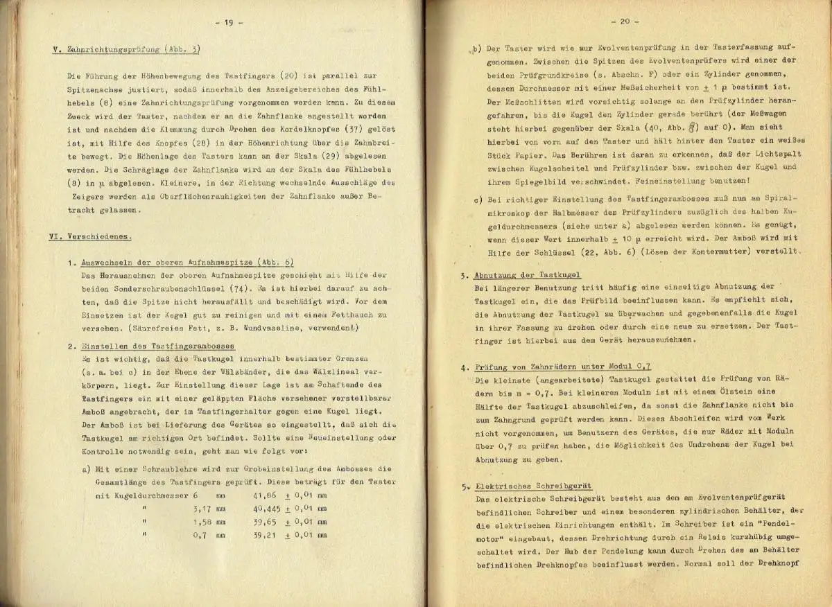 Gebrauchsanweisung zum Evolventenprüfgerät.
